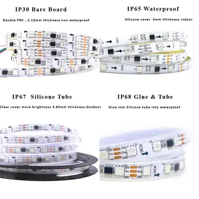 WS2811: it is 12V or 24V strips. Often controls groups of LEDs (e.g., 12v 1 pixel = 3 or 24v 1 pixel =6 LEDs) but not every single diode.