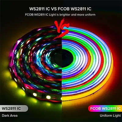 RGBIC COB LED strip light is different with RGB COB strip. RGBIC is high level . by adding external ICs WS2811, WS2814, and WS2818 to meet magic dream colors.